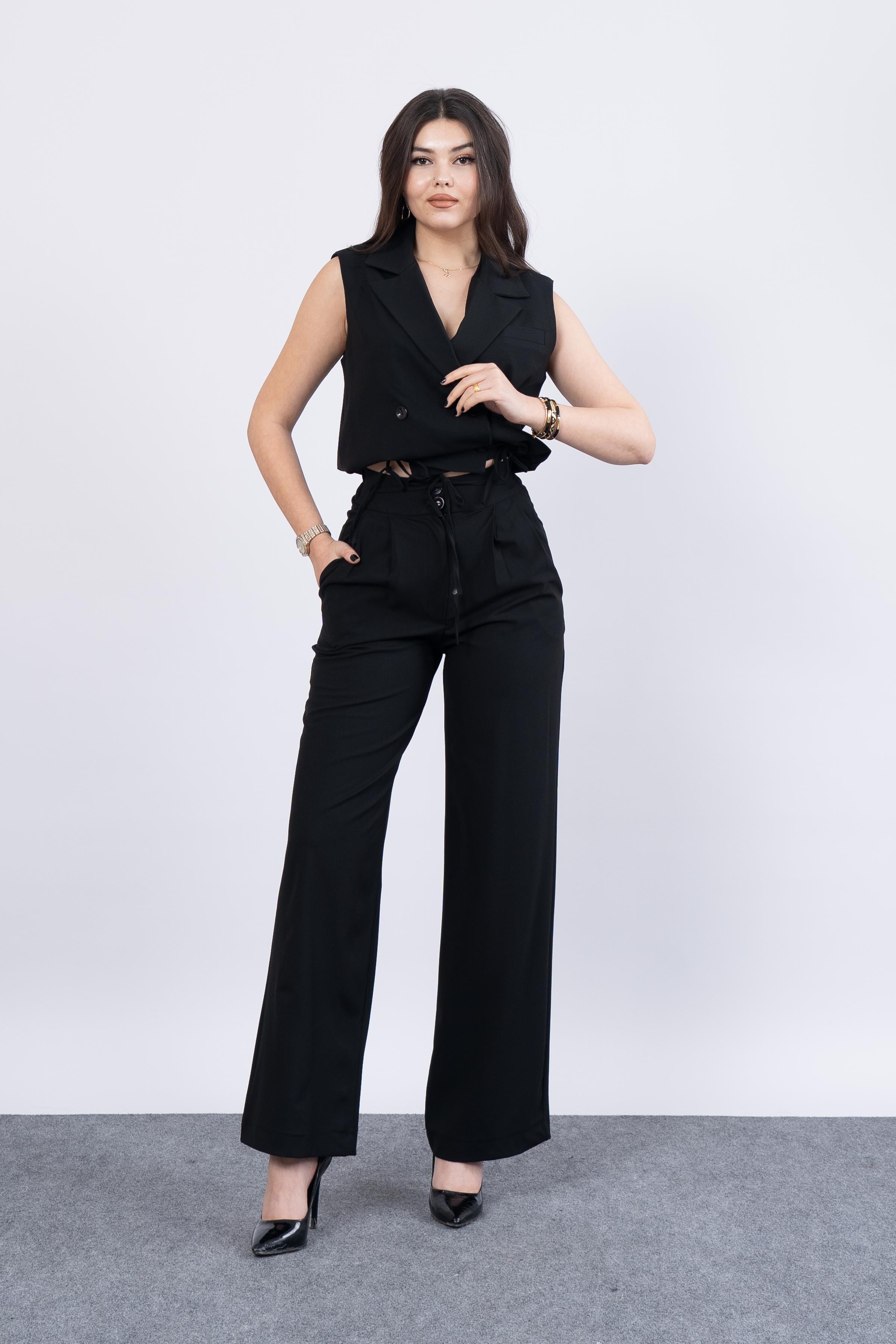 🖤 Beli büzgü detaylı astarlı kısa yelek + pileli, cepli, arkadan lastikli bol paça pantolon = 🔥 Şıklığın iki parçada vücut bulmuş hali!👗 Dokuma Atlas Viskon kumaşıyla zarif duruş, tok form ve asil bir görünüm 💎💯 Tam kalıp | Yelek 49 cm Pantolon 110 cm 36-42 beden arası | Manken: 36 / 170 cm🚫 Likrasız – esnek değil, her zaman formda durur!✨ Ofiste, davette ya da şehir sokaklarında: Tek kombinle tüm dikkatleri sen topla!