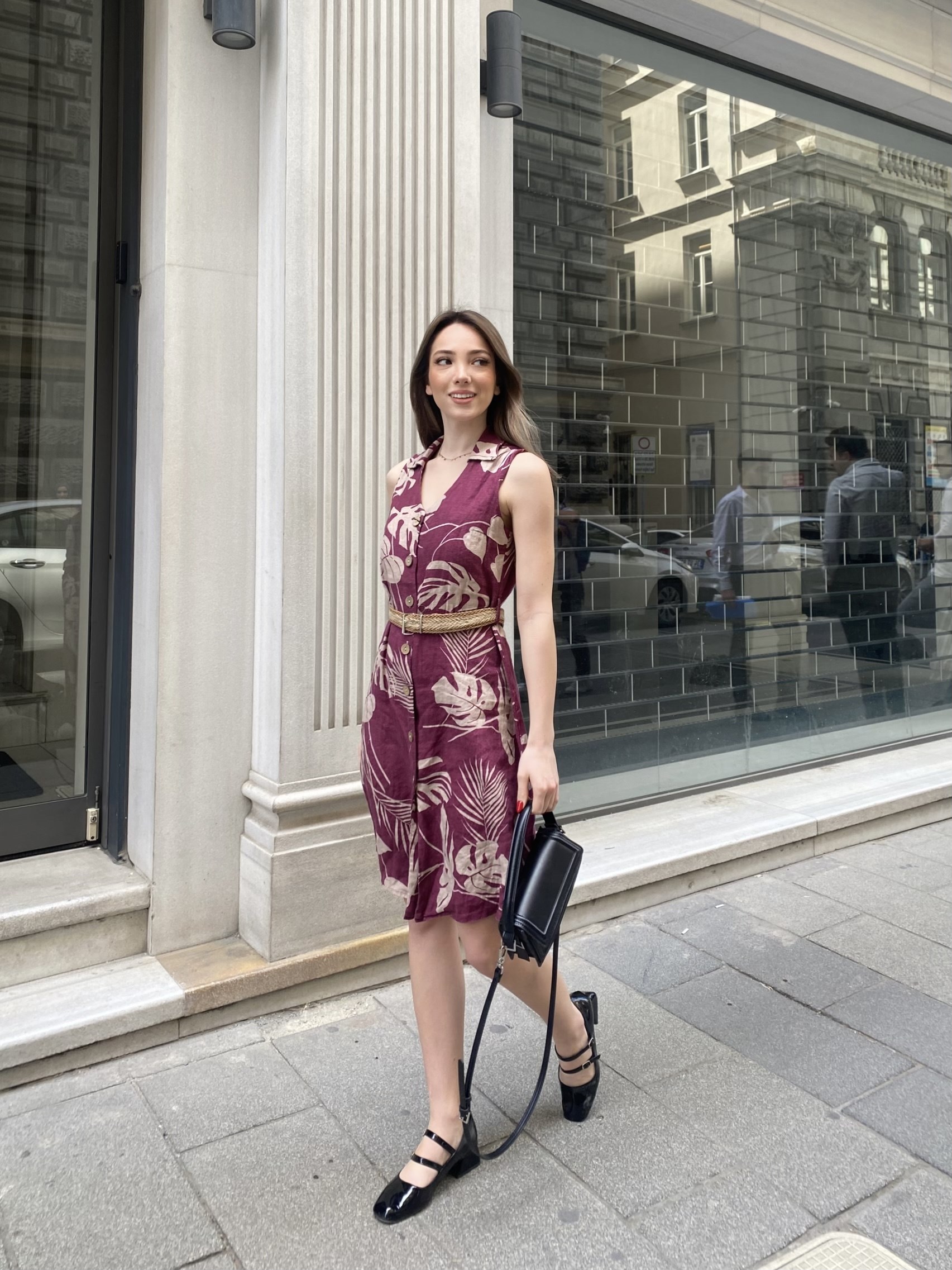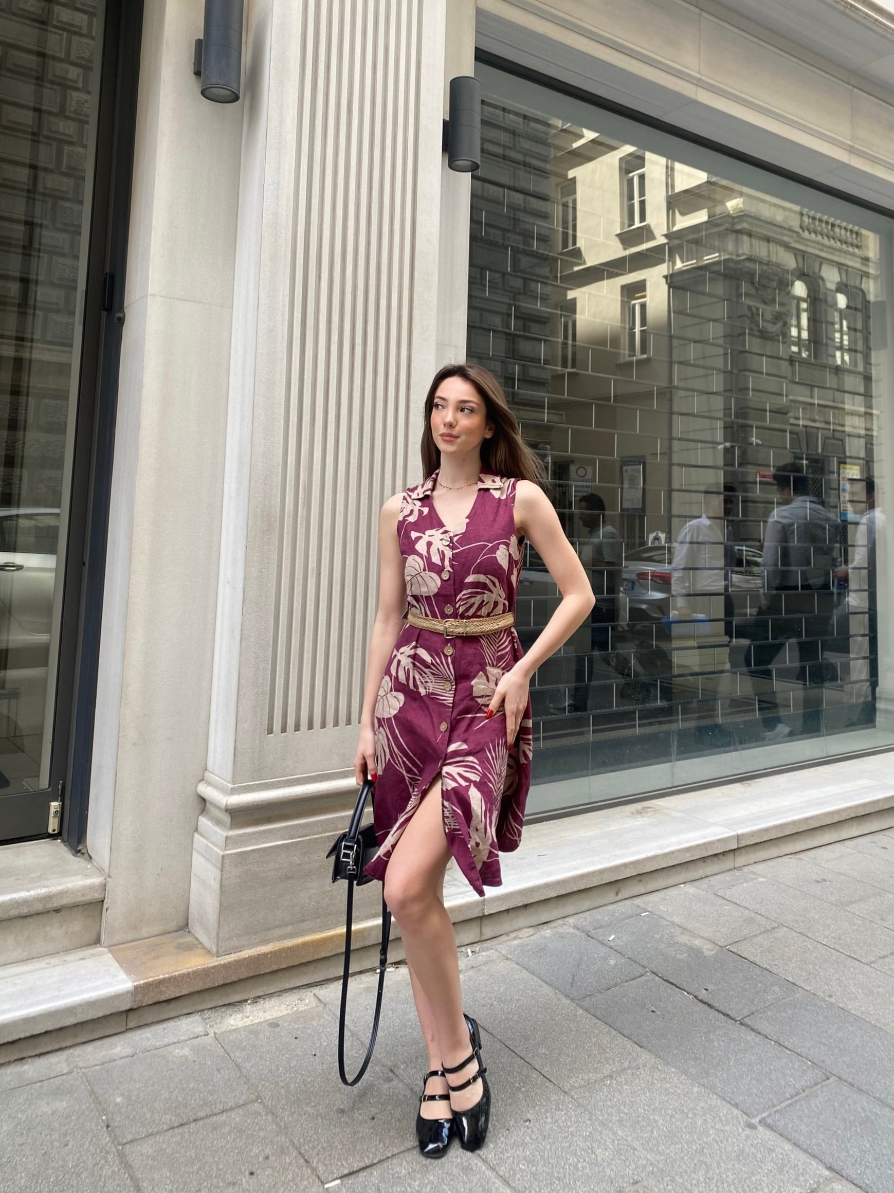 QUEEN ÇİÇEK DESENLİ KETEN ELBİSE