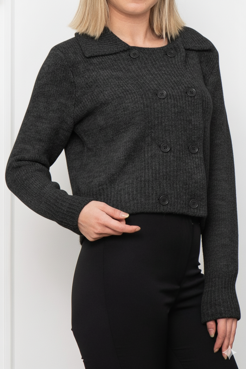 Zamansız bir parça, modern bir dokunuş.Yün triko dokusu ve çift sıra düğme detayıyla, her stile uyum sağlayan elegan bir hırka.Ofisten akşam buluşmalarına kadar, tek parça ile şıklığını tamamla. 🤍