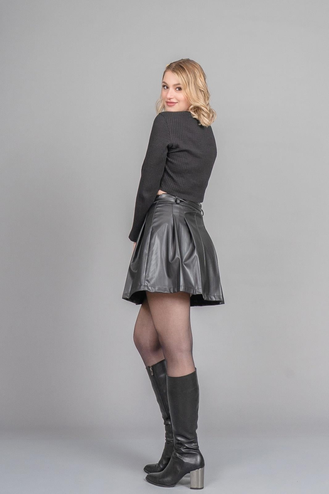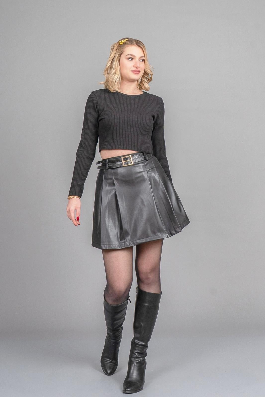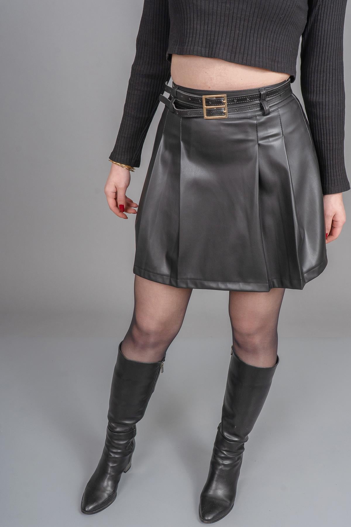 • ÜRÜN ÖZELLİKLERİ - Kumaş: Suni Deri - Uzunluk: 44 cm - Beden: 36-38-40-42 - Kalıp: Tam Kalıp - Stok Kodu: Y5MYAREK6843-6843