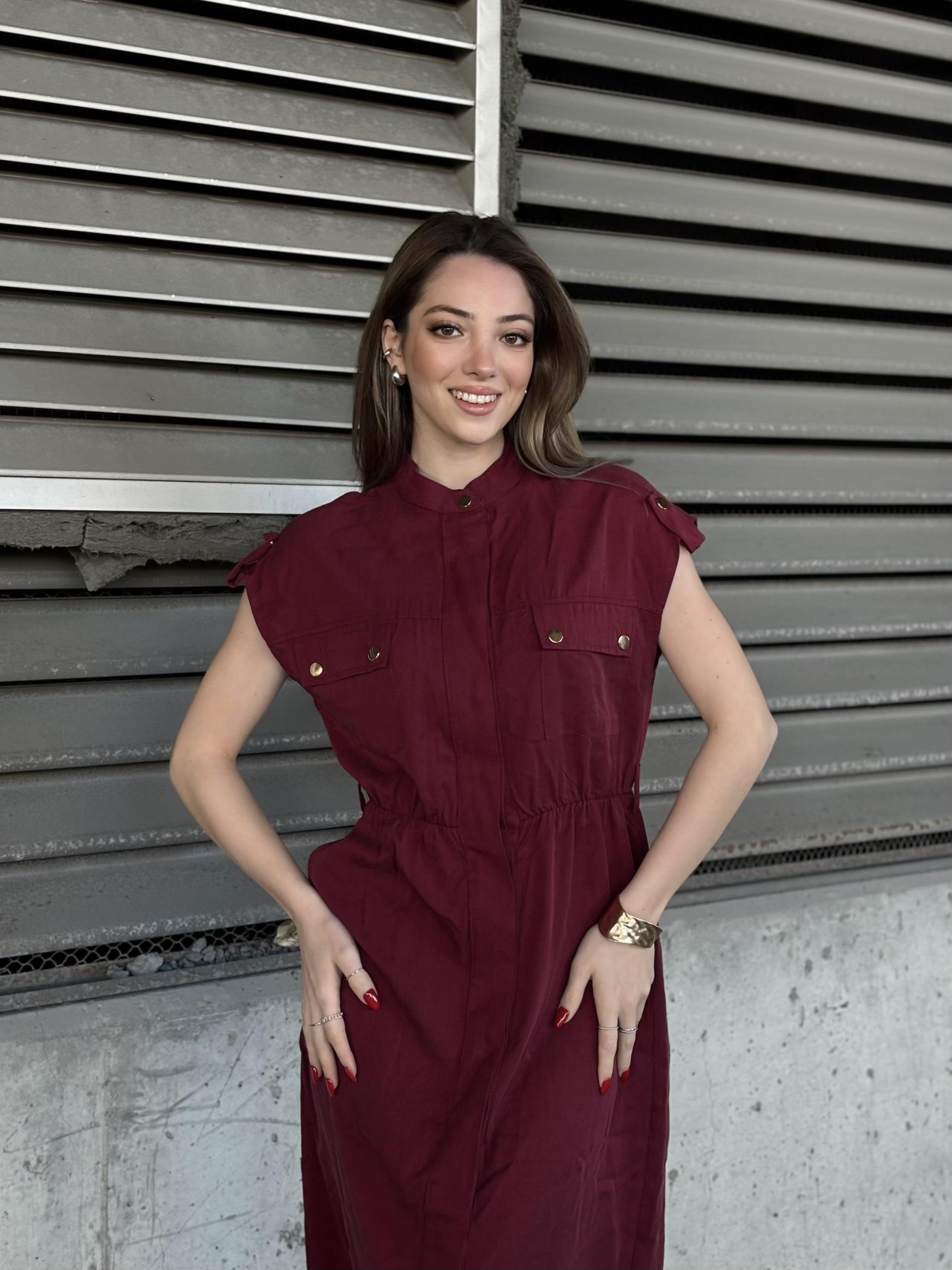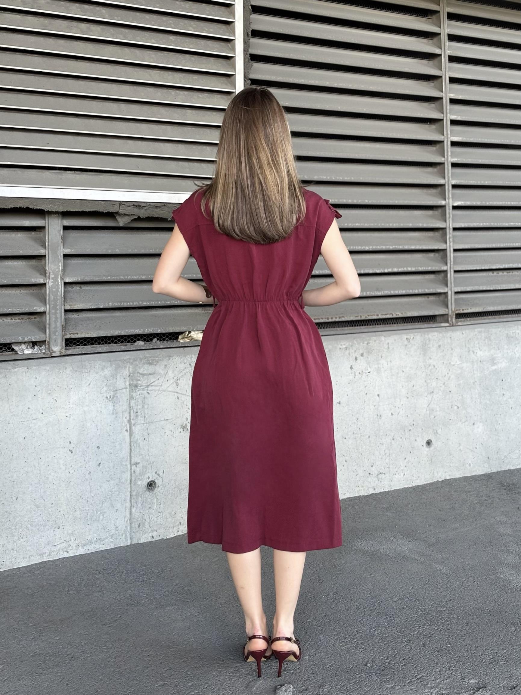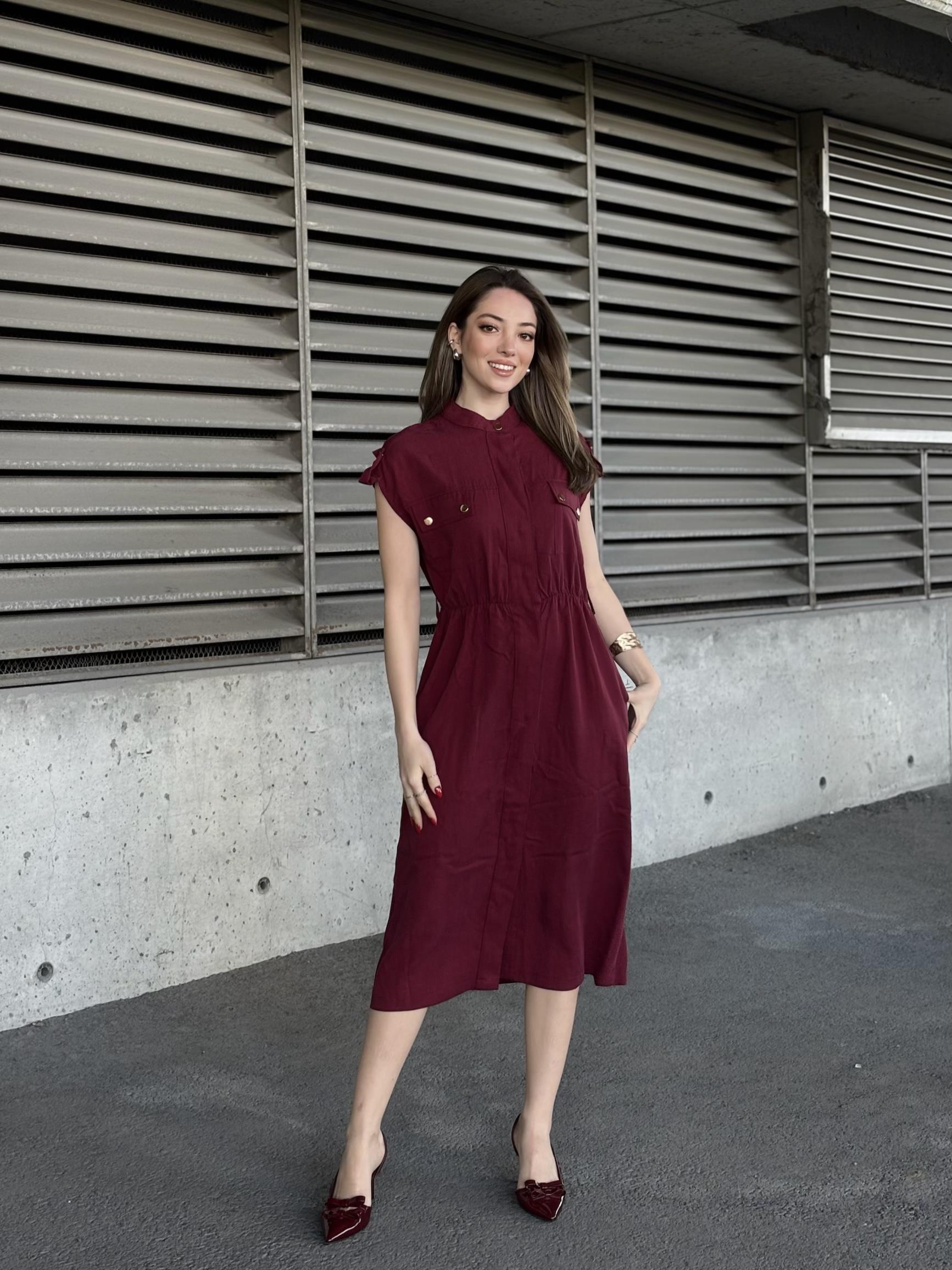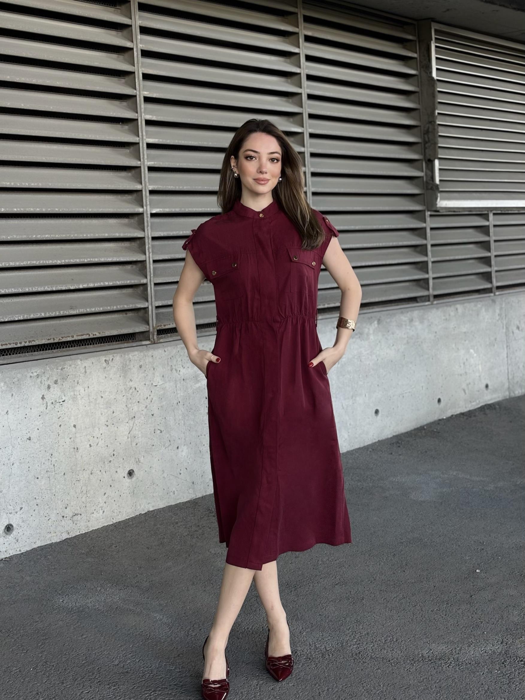Hakim Yaka Kemerli Düğmeli Uzun Elbise 50311 (Y25YARE50311-22)