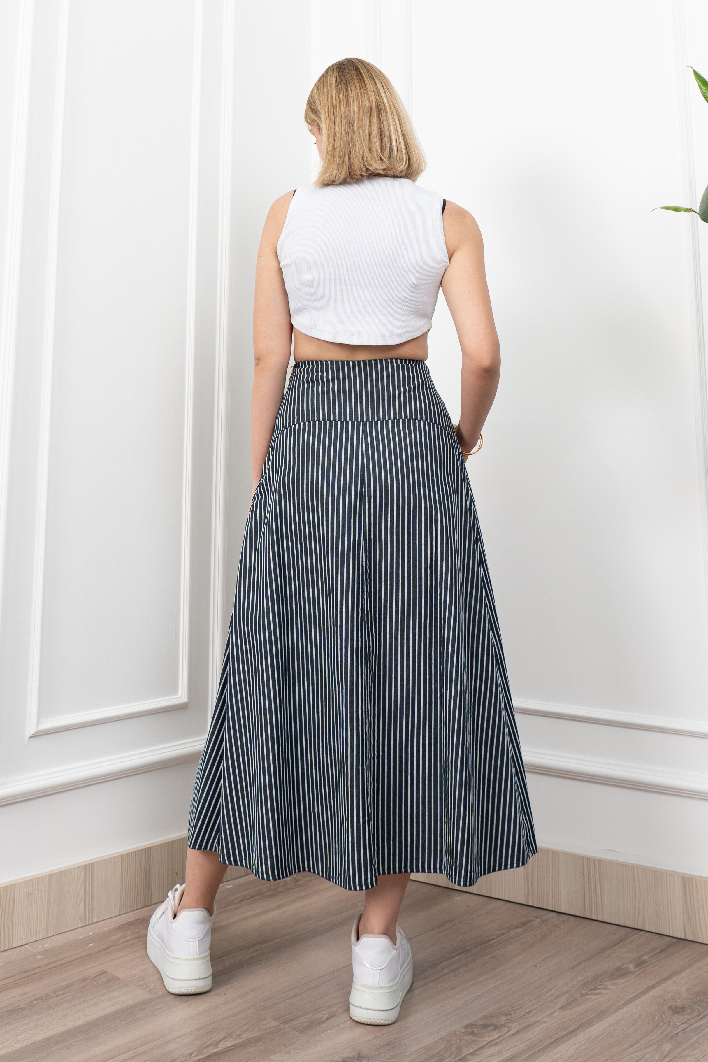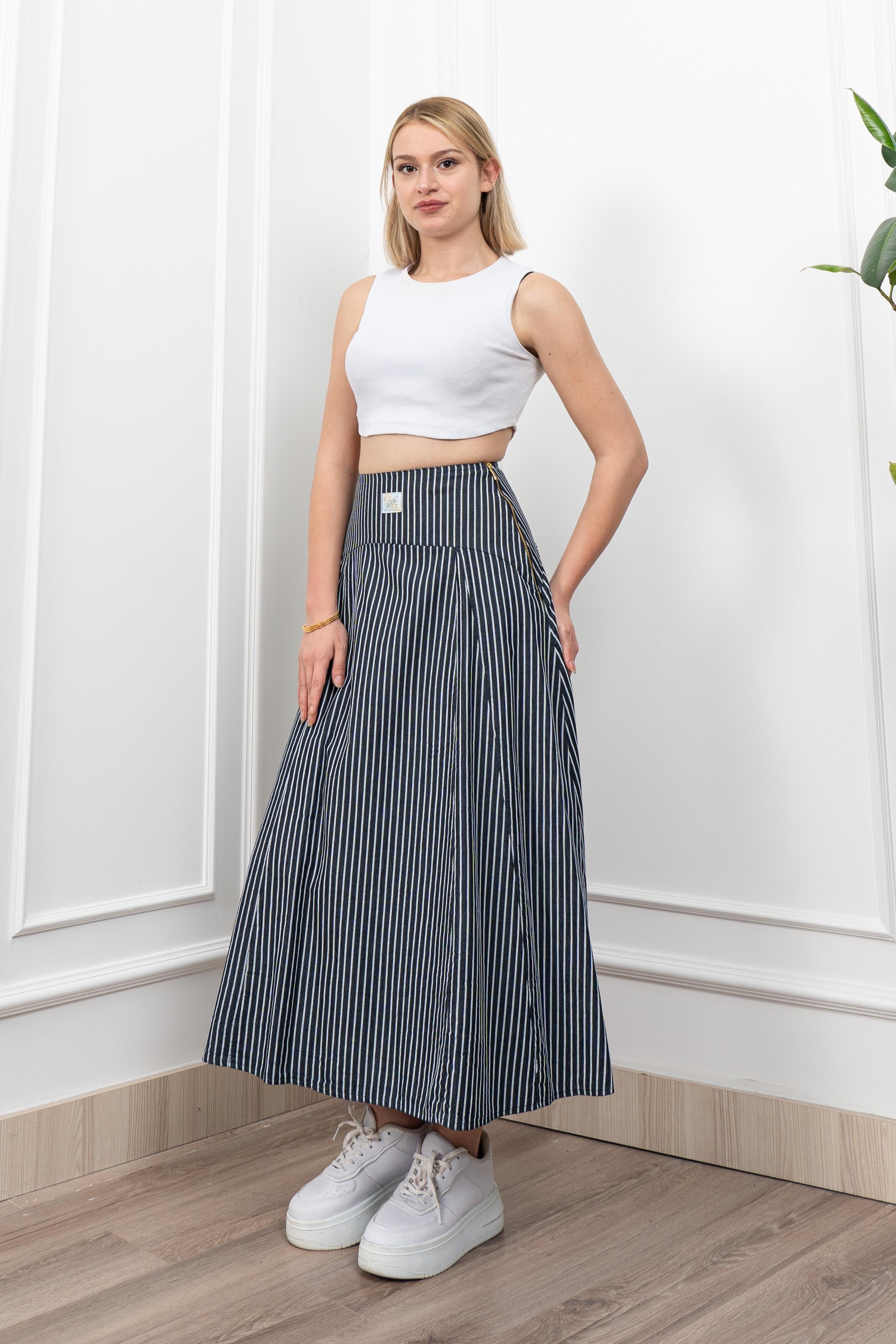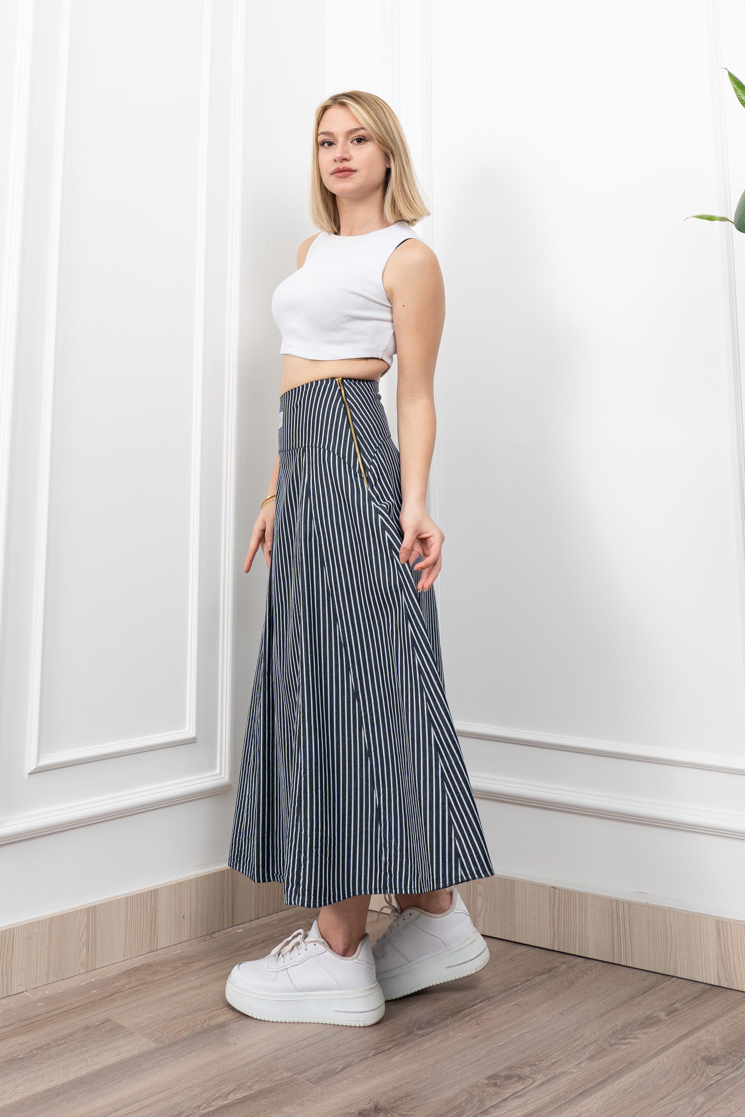 Bel Korsaj Detaylı çizgili uzun etek - yandan fermuarlı likrasız esnek değilÜrün Kodu: 6797