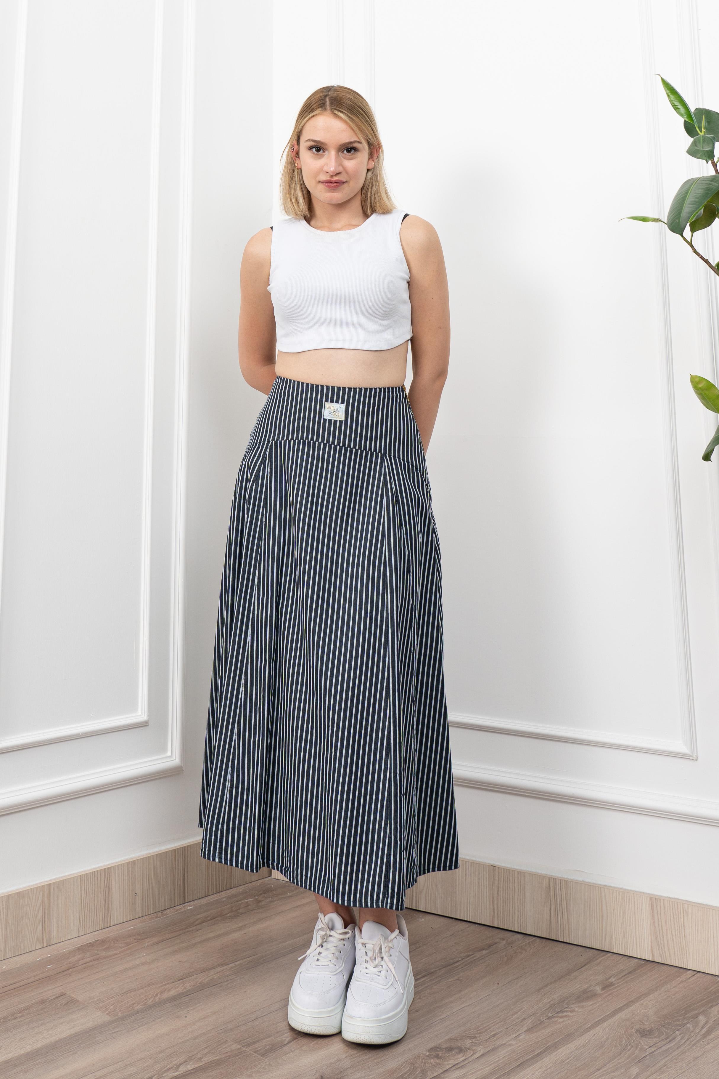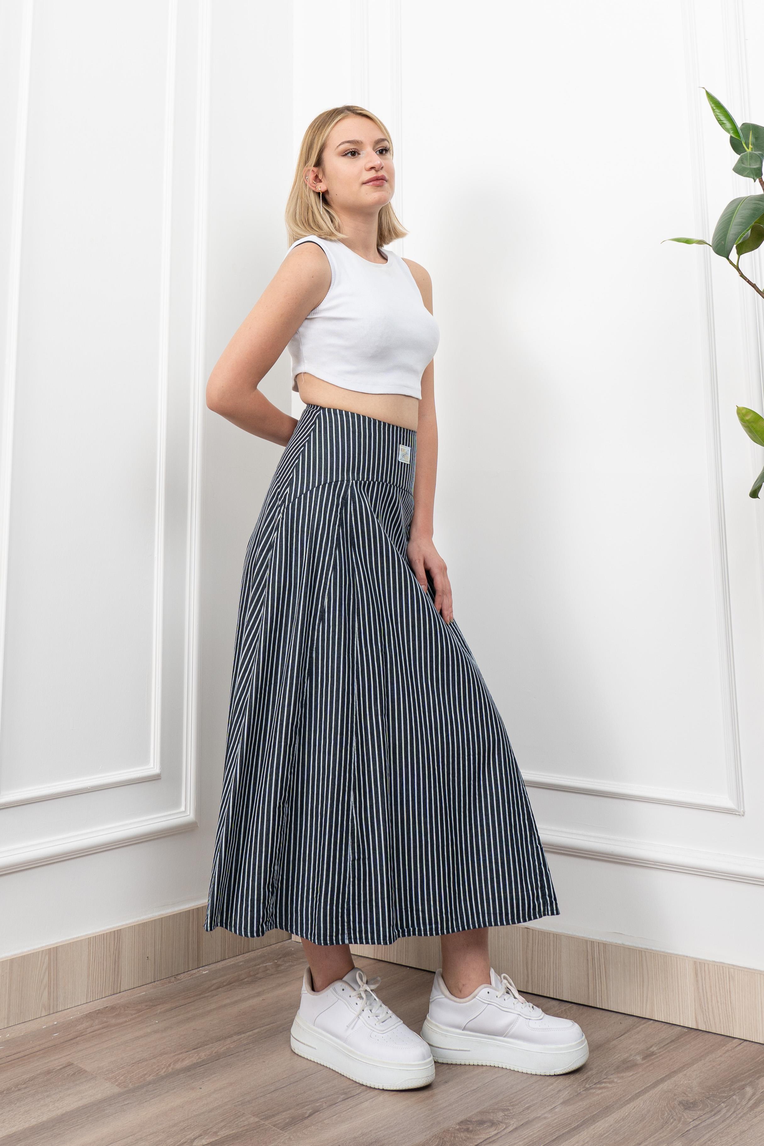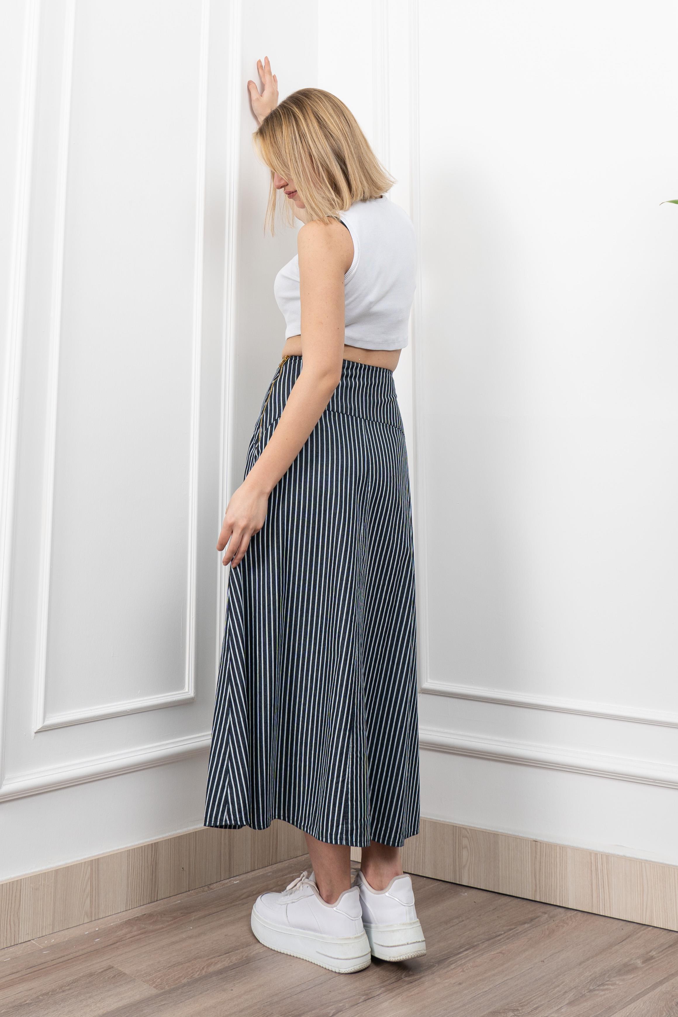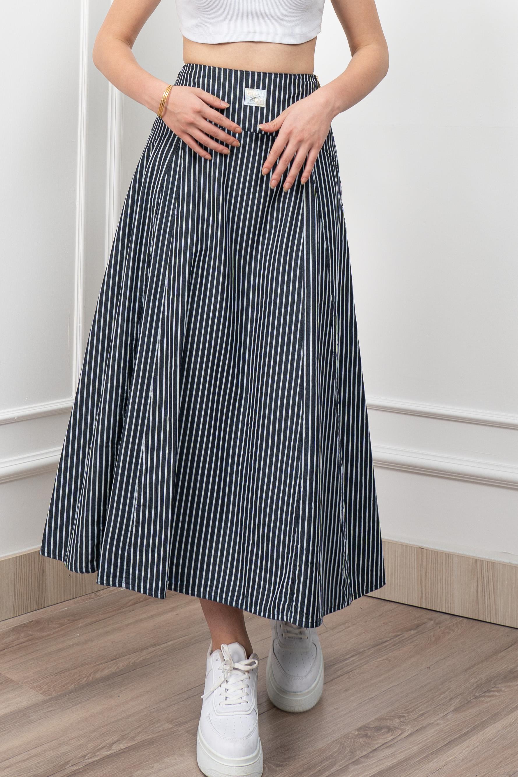 Bel Korsaj Detaylı çizgili uzun etek - yandan fermuarlı likrasız esnek değilÜrün Kodu: 6797