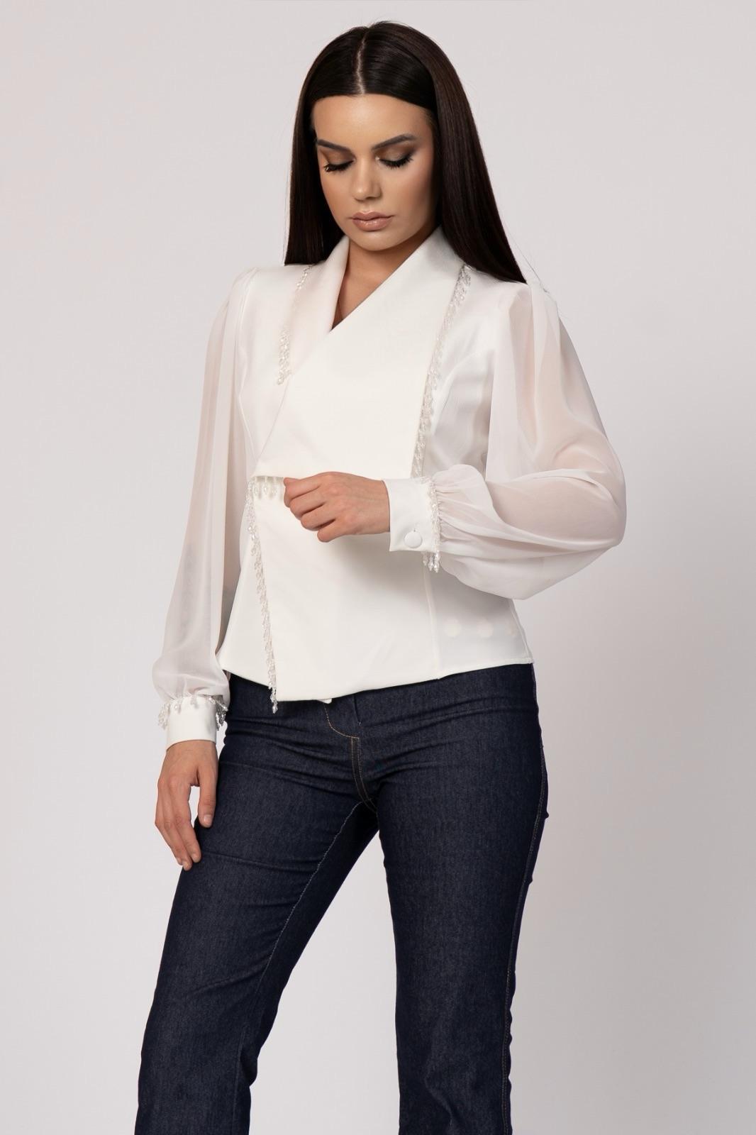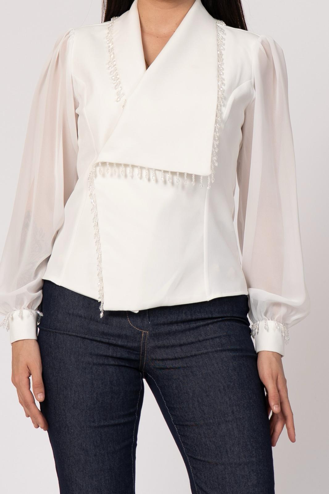Kruvaze Yaka Taş Detaylı Kolları Transparan Bluz 2781 (Y25YARE2781-03)