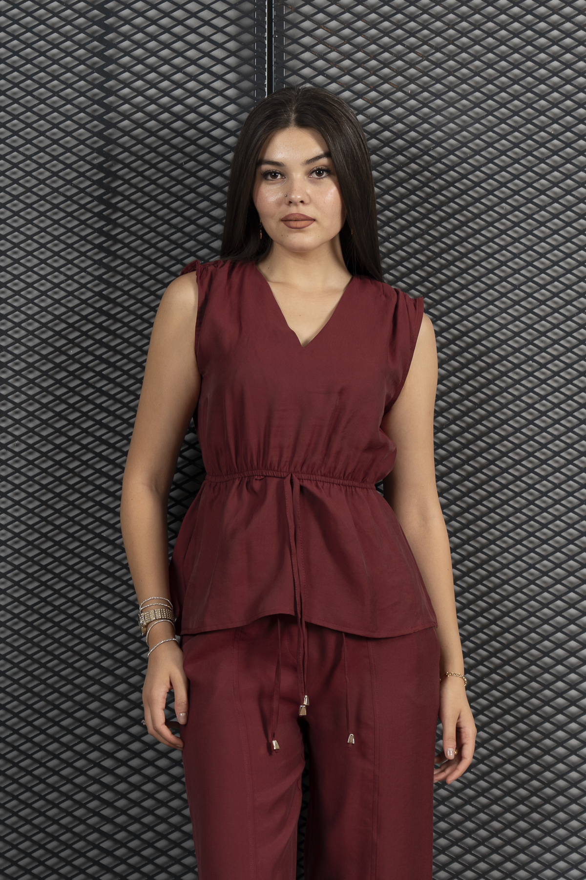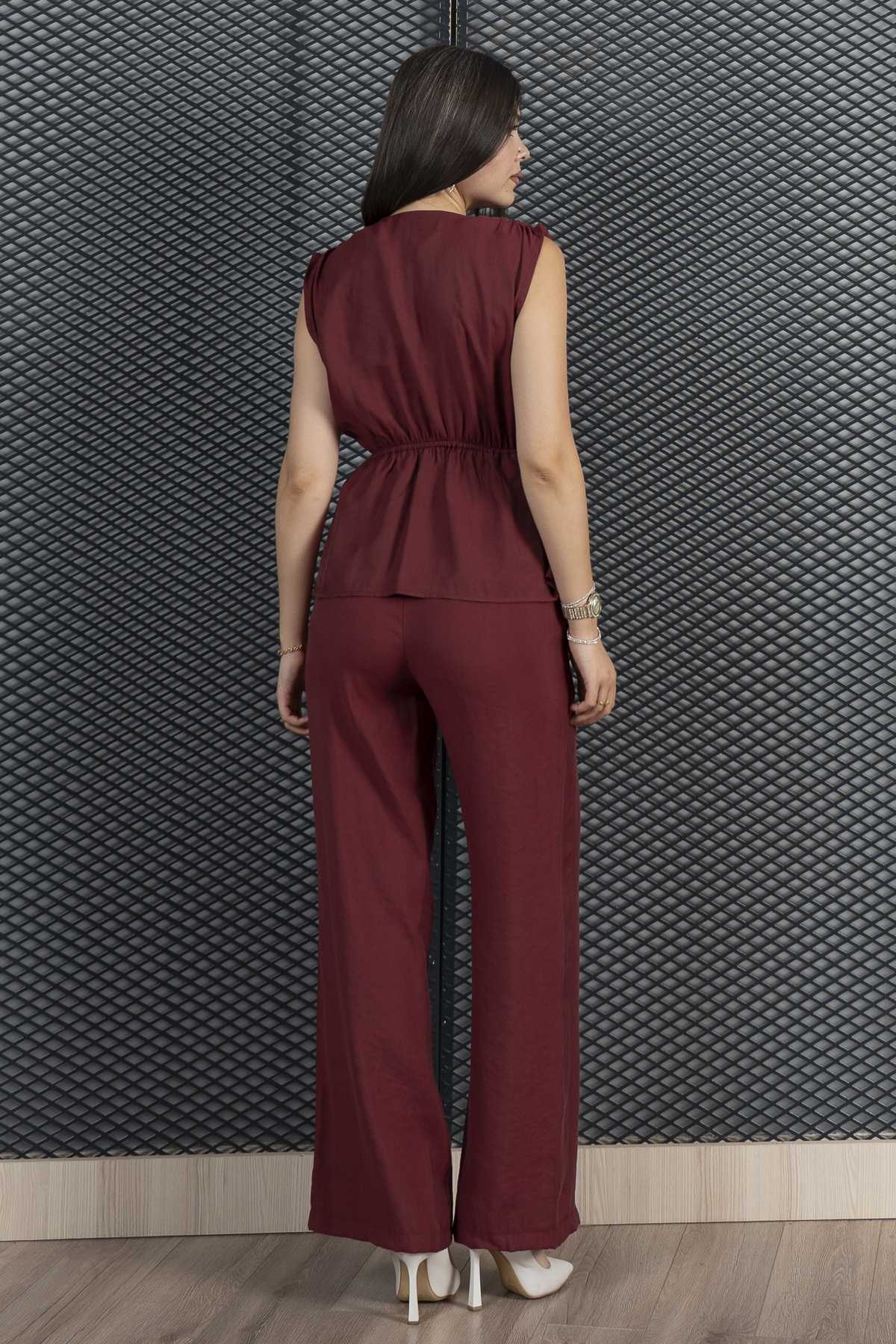 Omuzları Büzgülü Beli Lastikli Bluz Ve Önden Yırtmaçlı Pantolon Takım 1249 (Y25YARE1249-22)