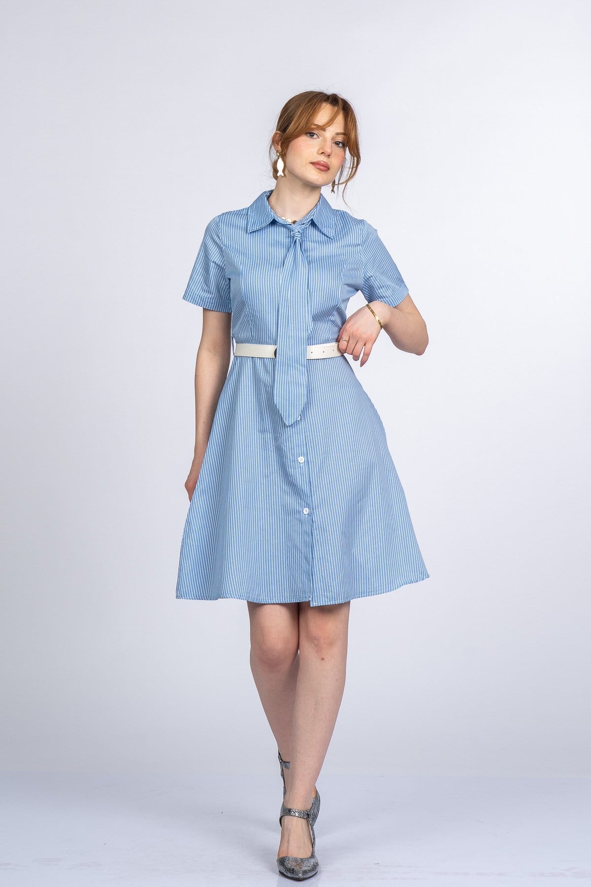 PRISCILLA ÇİZGİLİ ELBİSE (Y6MYARY50382-018)