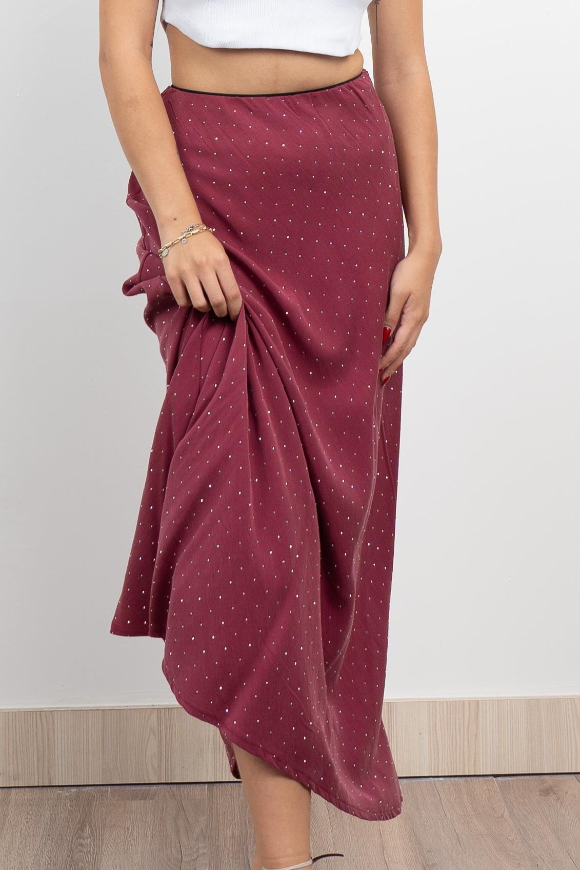 Taş Baskılı Beli Lastikli Floş Viskon Uzun Etek 6803