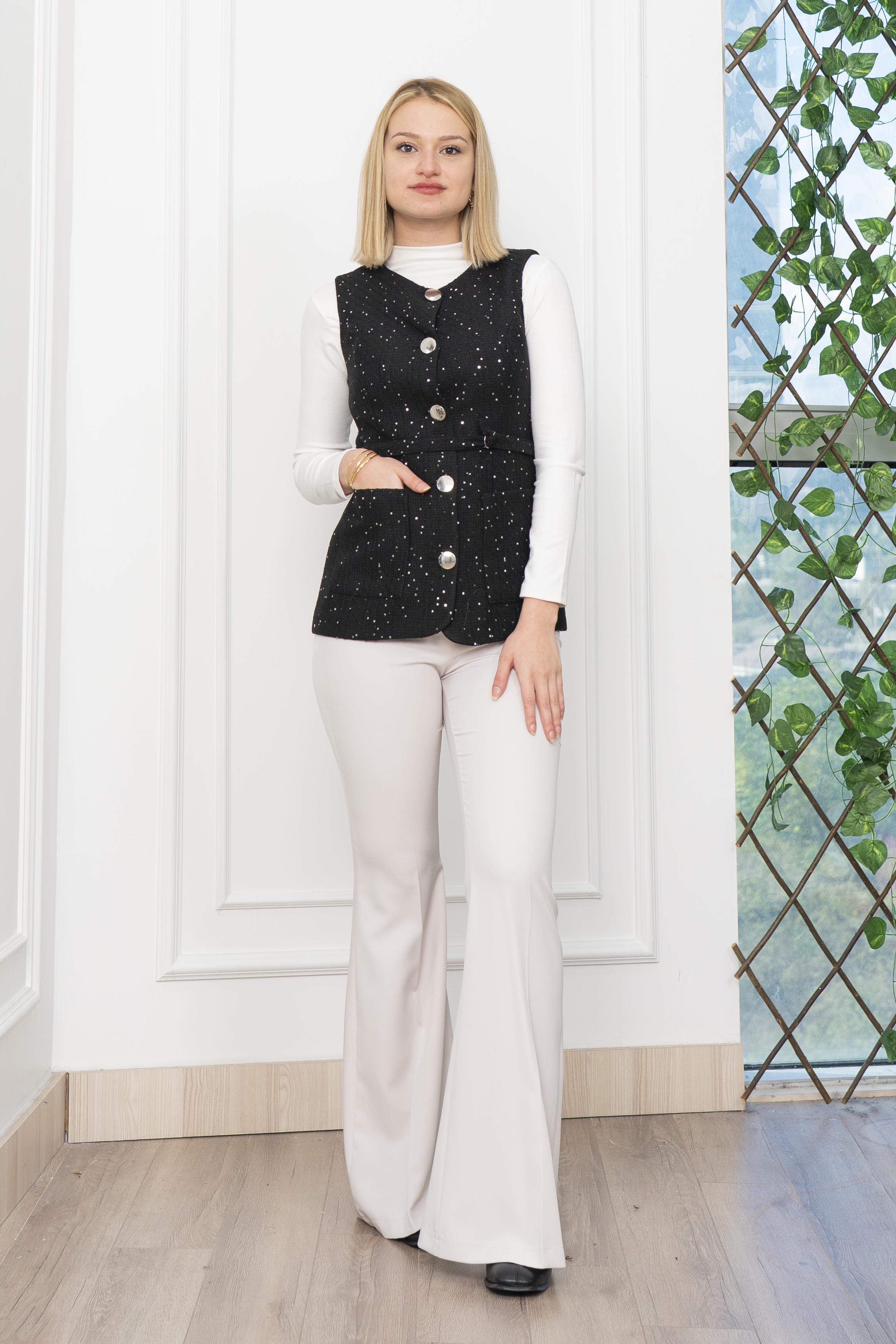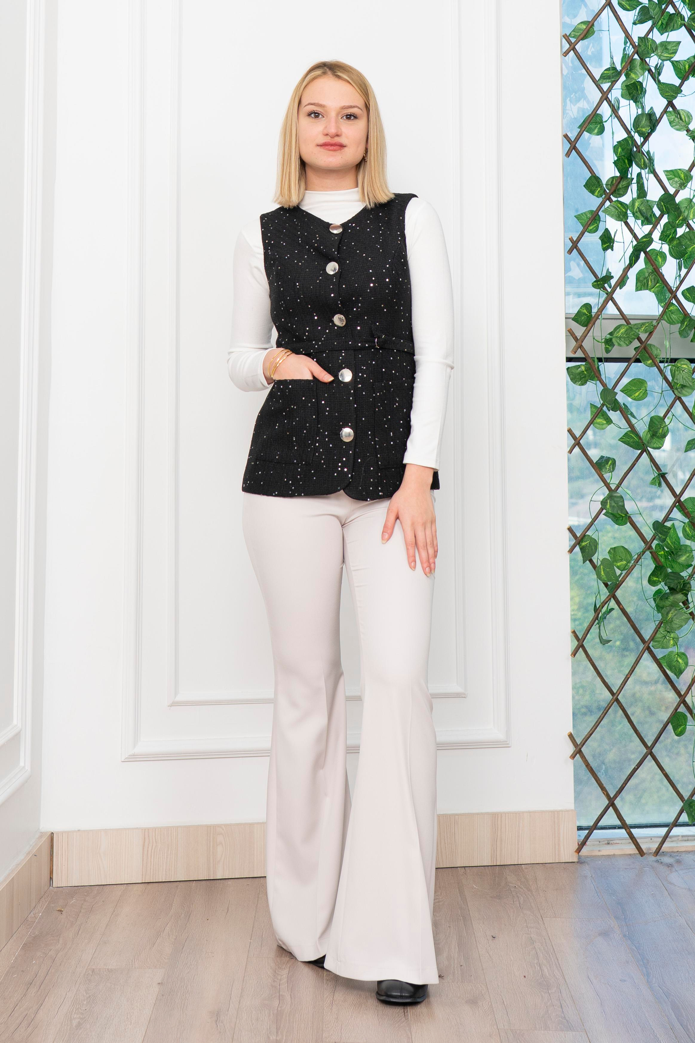 Buklet Kumaş içi astarlı kuşak kemer detaylı ve cepli uzun yelek - likrasız