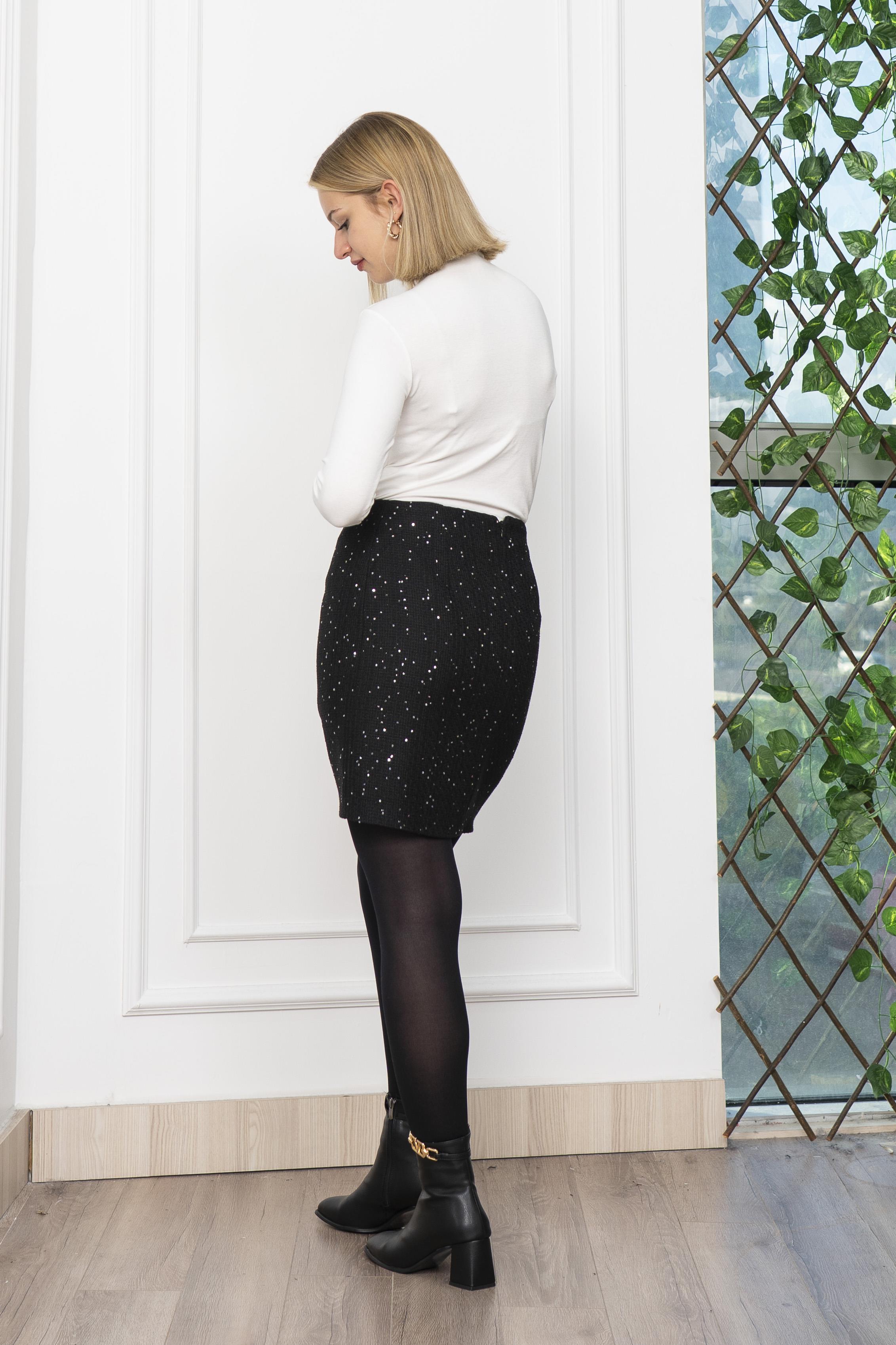 Pul detaylı ve içi astarlı buklet kumaş gizli fermuarlı etek - likrasız