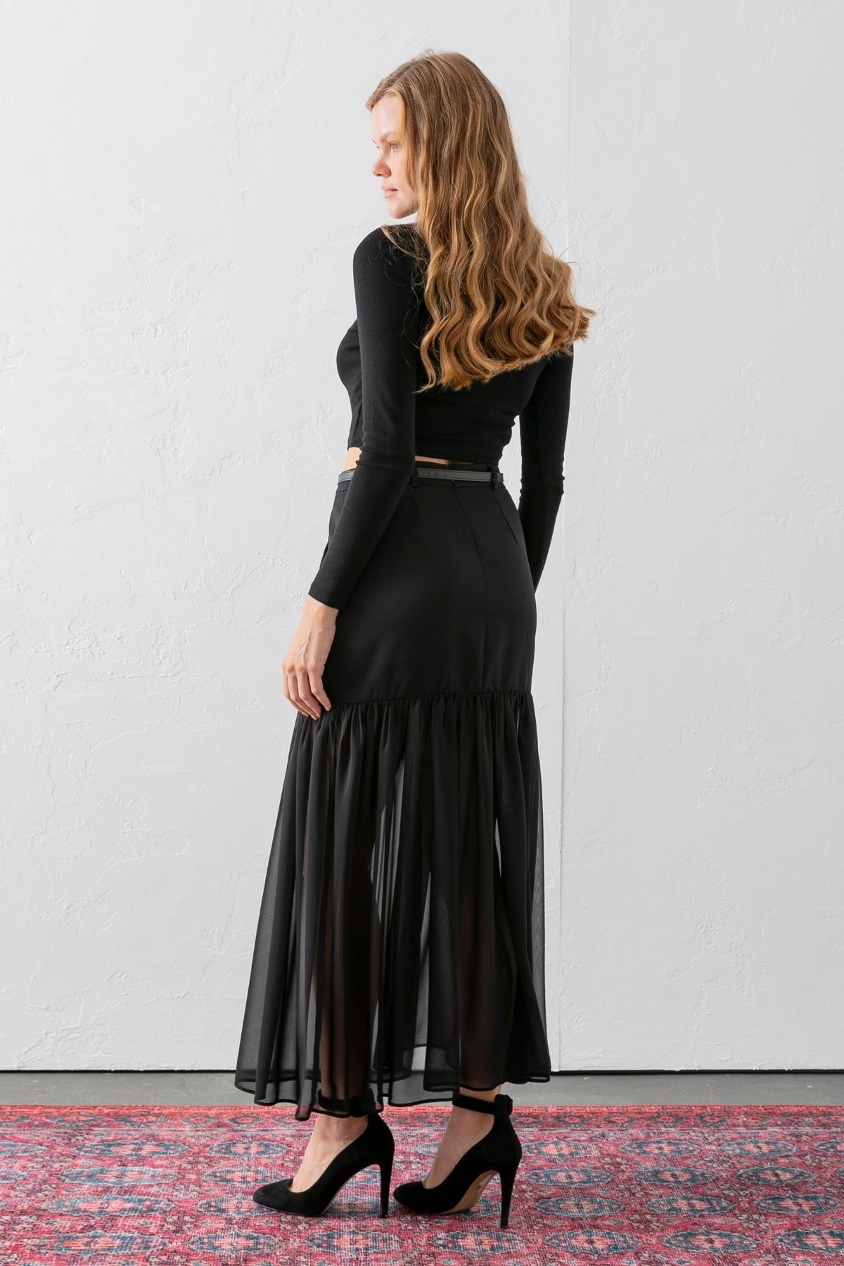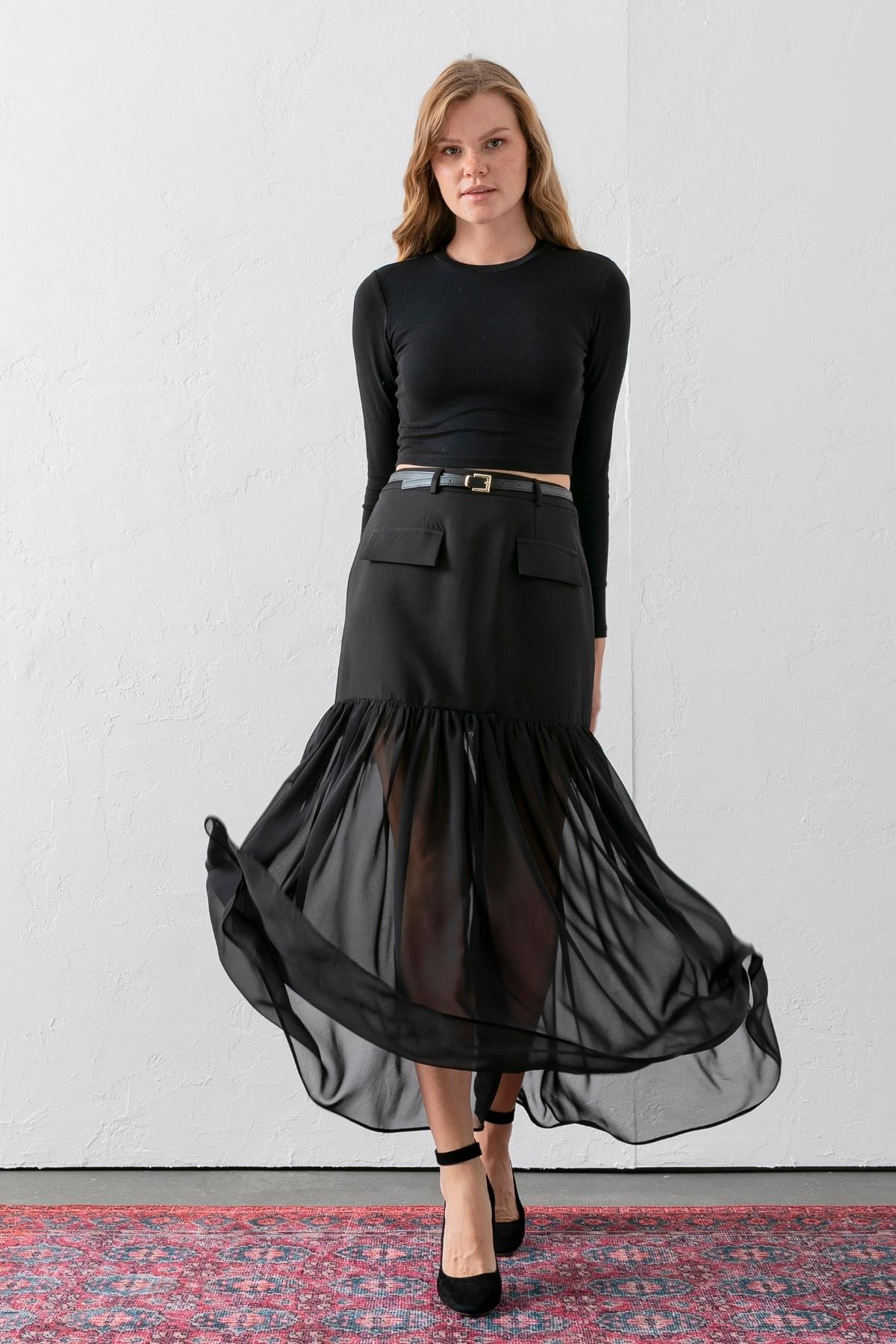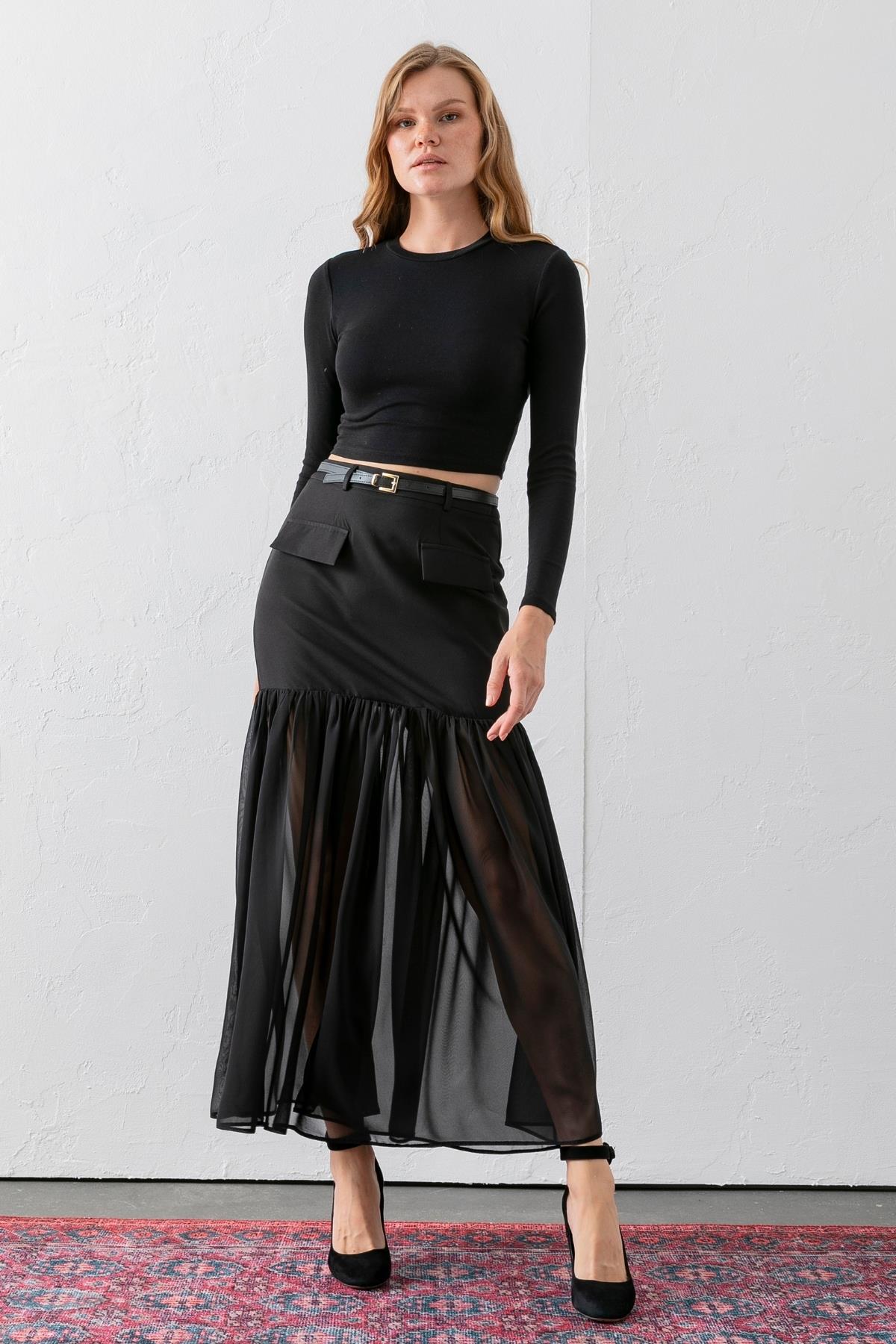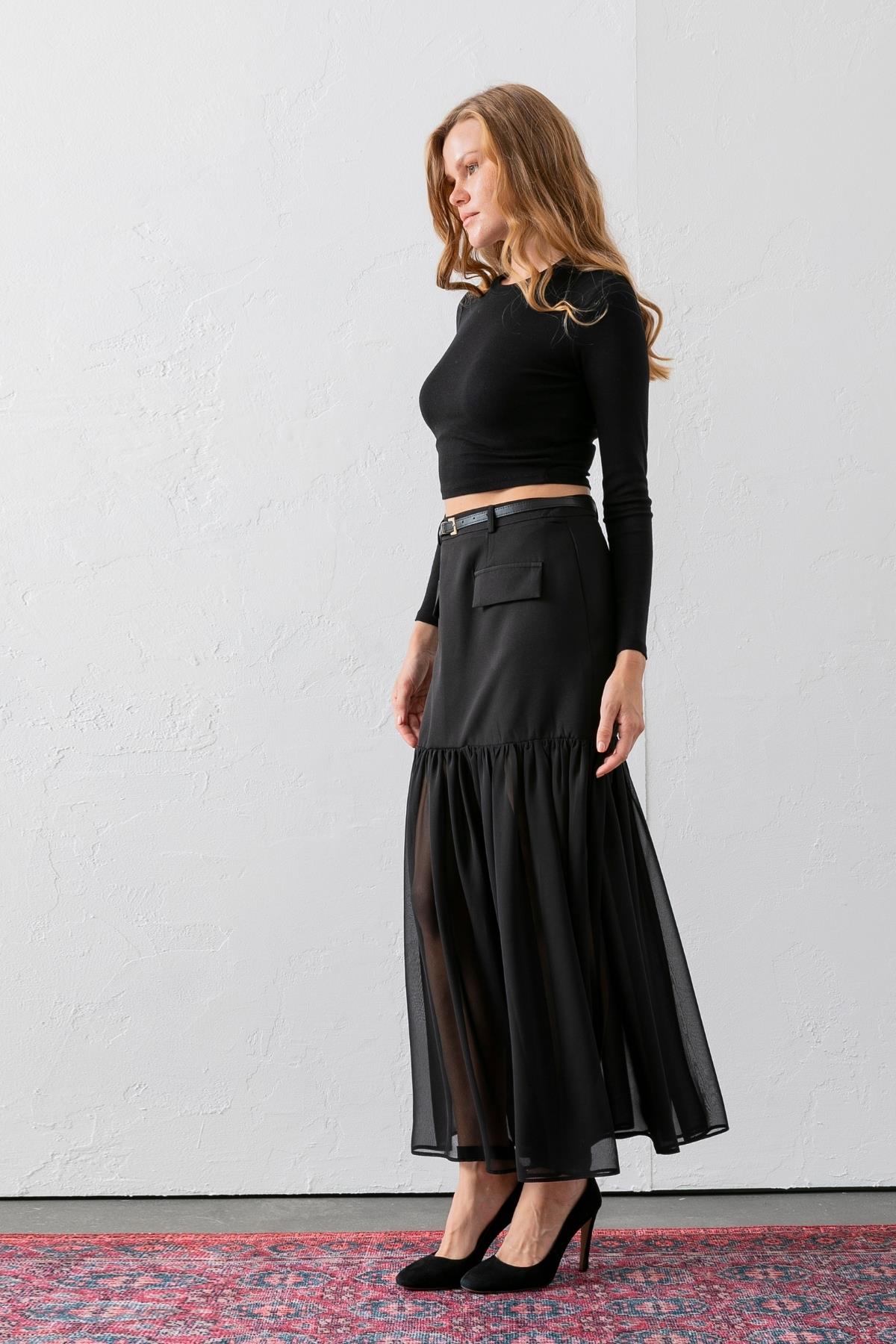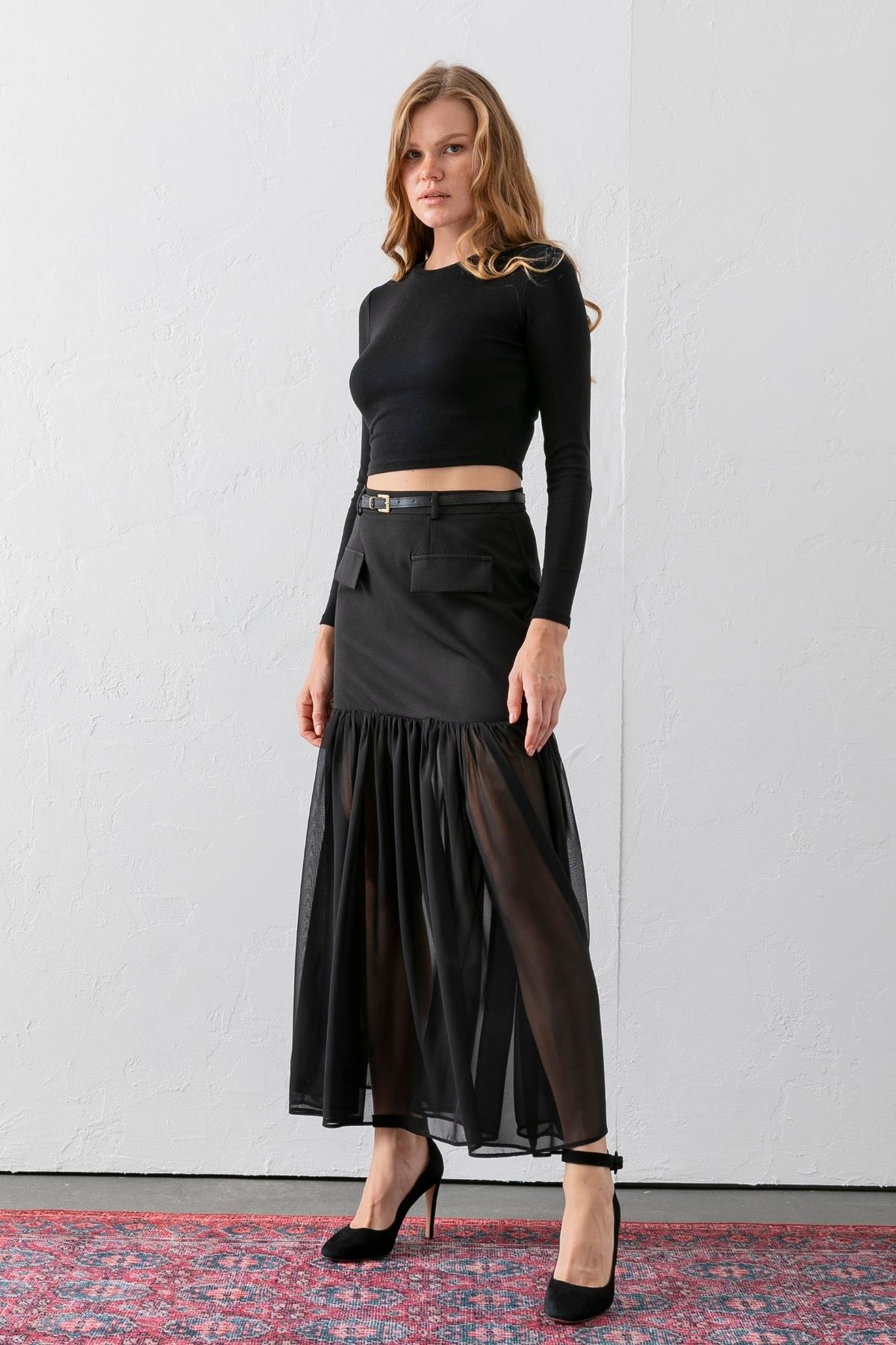 Süs cep detaylı altı şifon Kemerli Etek - LikralıÜrün Kodu:6816