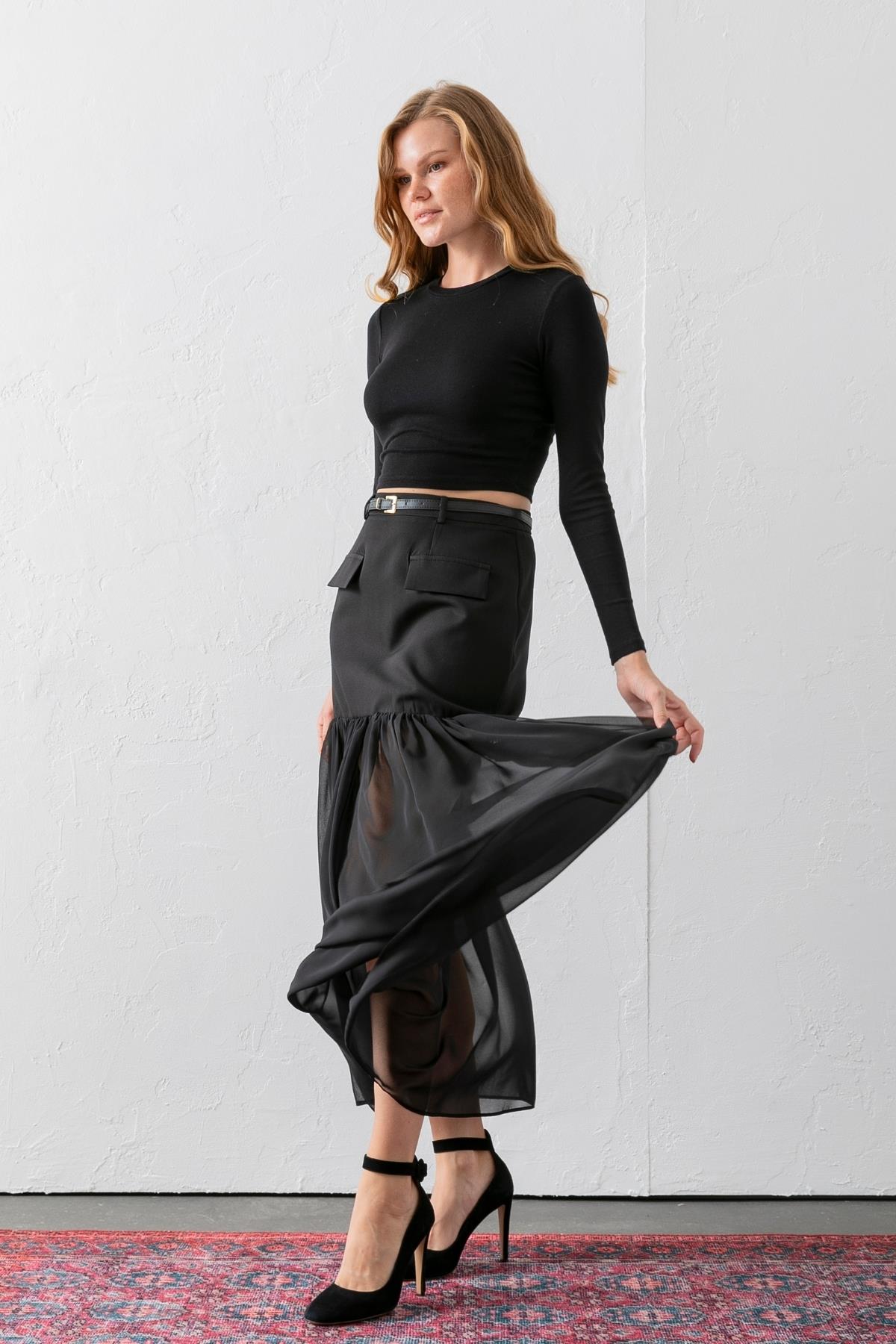 Süs cep detaylı altı şifon Kemerli Etek - LikralıÜrün Kodu:6816